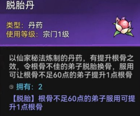 我们可在这里,我们可以看到在弟子服用金丹后,六维的提升水平。如果发现弟子在服用金丹后,【根骨】或【潜力】达不到要求,祖师们可以在给弟子服用金丹前,使用一些低门槛道具(比如60的潜力药或者60的潜力酒之类的)来给弟子补充【根骨】或【潜力】