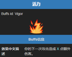 该状态类型属于玩家 BUFF,且具有可叠加特性。在效果机制方面,拥有活力状态时,下一次攻击牌造成的伤害会增加 X 点。可叠加,层数越高,下一次攻击的额外伤害越多。使用一次攻击牌后,活力状态被消耗,无论是否命中。对于多段攻击卡牌,额外伤害通常只加在第一段或总伤害上,具体取决于游戏机制。