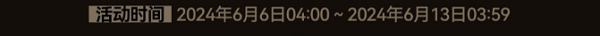 2024年6月6日04:00~2024年6月13日03:59(服务器时间)。