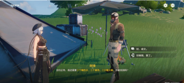 4、对话中选择帮他采集,他会告诉玩家在流放者营地有许多炸药桶,让玩家去取过来;