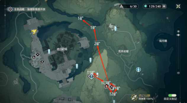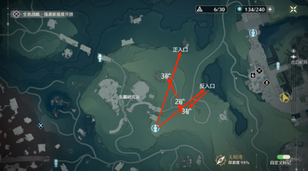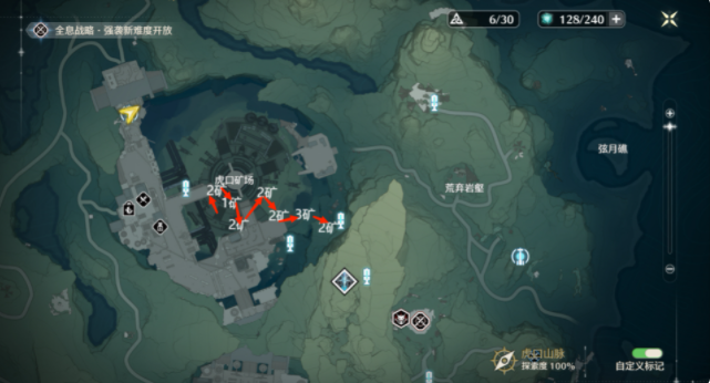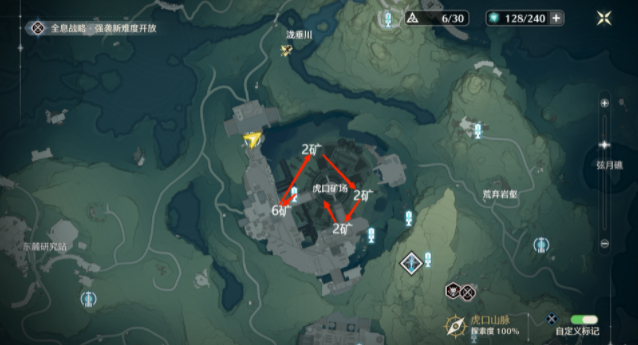 *下图1中6矿需要完成密方机关术二,不然只能挖4个矿,需要开门的密码都是【2457】。