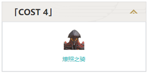 1、cost4:燎照之骑:就是大家俗称的摩托车,相信伙伴们已经用过摩托车在大地图上面驰骋了。如果还有小伙伴不知道燎照之骑具体获取方法的,可以在游戏鸟手游网搜索。