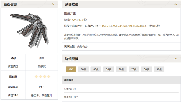 5、音感仪:清音。这个就是泛用性了。放大招加攻击,目前两个音感仪主c吟霖和安可都可以用。优先级较高。