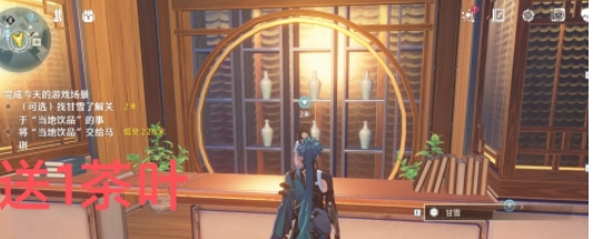 3、没有茶叶的玩家需要在今州城南边传送锚点附近与甘雪对话,完成对话即可获得茶叶。