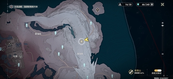 1、通过地图传送至盘龙崖右上角传送信标的方位,随后前往图中的位置找到护心鳞。