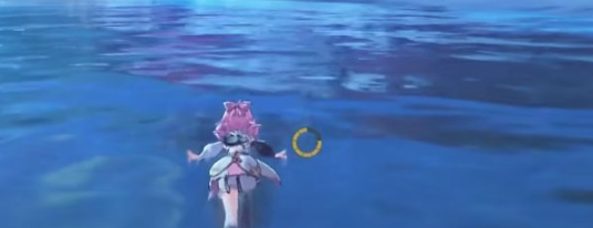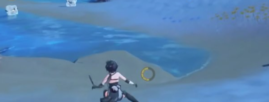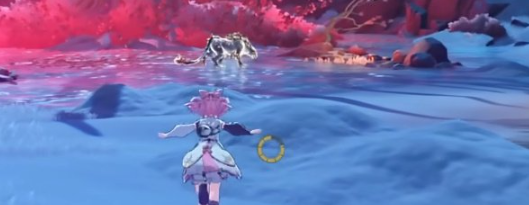 2、顺着小地图右侧移动,即可在河流中找到一只踏光兽。