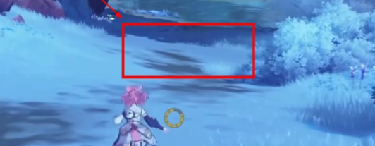 2、往小地图的下方移动,靠近湖边的位置概率刷新出叮咚咚。