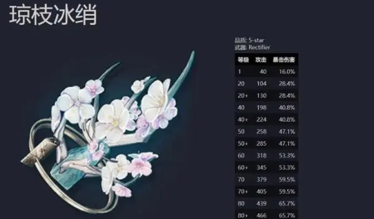 1、琼枝冰绡属于折枝的专武,拥有攻击力和暴击伤害加成