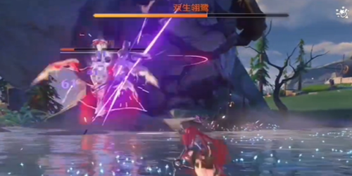 3、双生翎鹭BOSS漂浮在水面上,玩家需要靠近并开始战斗。