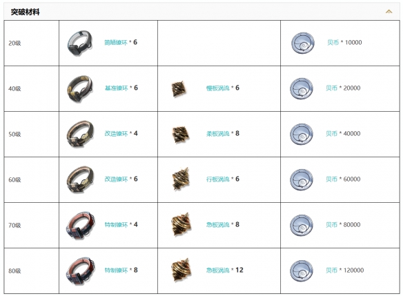 初始 / 20 / 40 / 50 / 60 / 70 / 80 / 90级:
