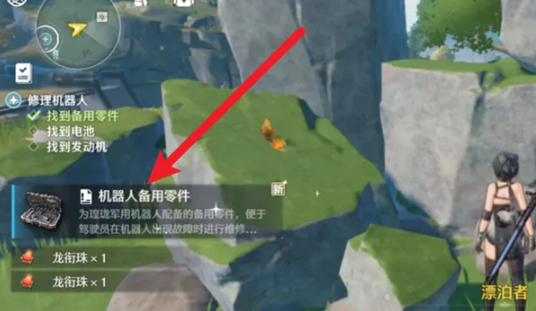 1、进入光圈,追踪龙衔珠,在石头旁获取备用零件。