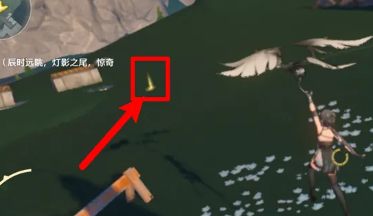 3、接着前往灯塔影子尖端处飞行,来到该位置后找到光标