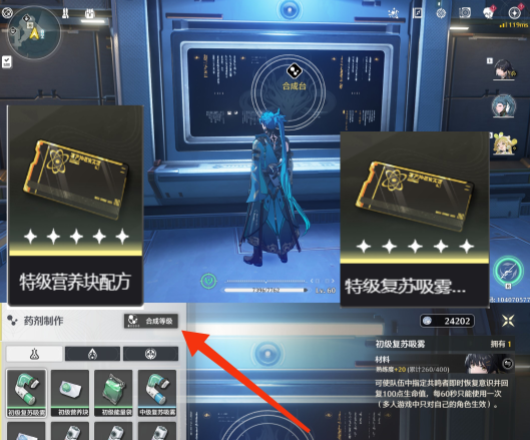 1、在游戏内打开合成台,通过药剂制作选择1-4星的合成等级;