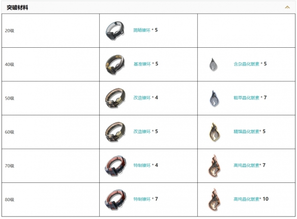 初始 / 20 / 40 / 50 / 60 / 70 / 80 / 90级: