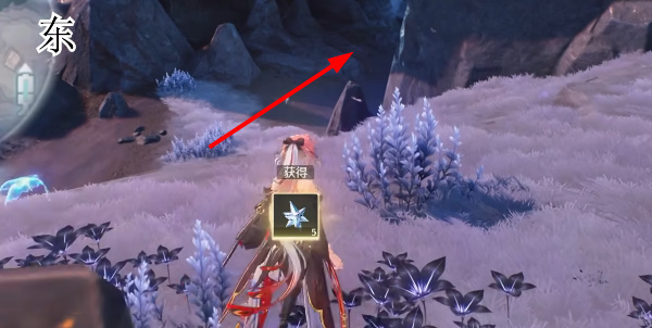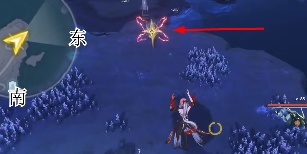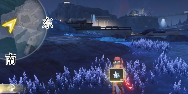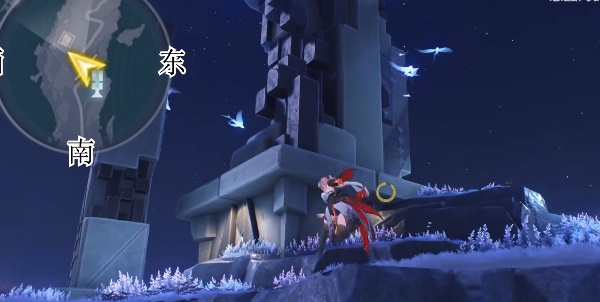 2、在我们的西北方向小地图左上角抬头,就是在这个顶上就可以拿到了。
