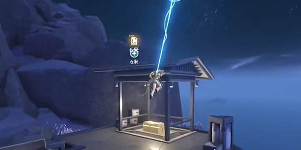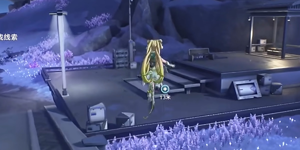 4、找到后需要使用钩锁,前往下图所示的房顶上面
