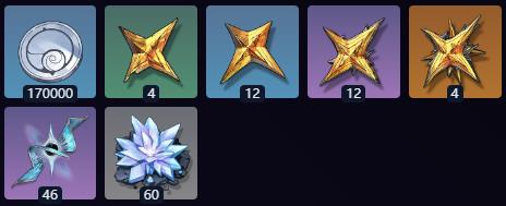 17w贝币、4低频呓语声核、12中频呓语声核、12高频呓语声核、4全频呓语声核、46幽囚拓扑、60暂星