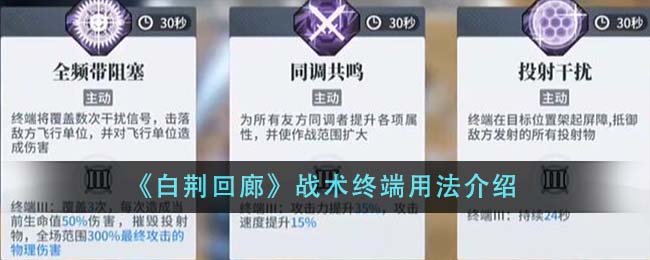 白荆回廊战术终端怎么用?战术终端是白荆回廊其中的对抗白荆的工具,许多玩家不知道战术终端具体应该怎么用,玩家可以根据文章内容分享再结合实际情况进行使用战术终端,同时技能使用只有2次,需要合理进行搭配,详细的内容在这篇白荆回廊战术终端使用方法介绍中,快来一起看一下吧。
