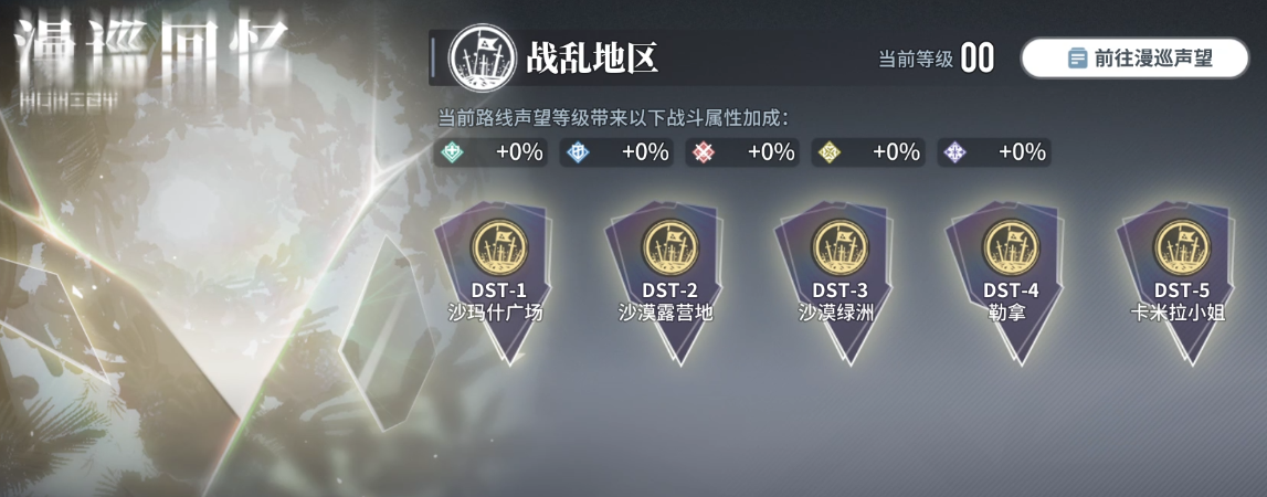 「蜃楼·战乱地区」的漫巡路线技能为【破沙领域】:克制[风沙守护]效果,并对拥有[风沙守护]的目标造成额外伤害。除却【破沙领域】,监督还可以在「蜃楼·战乱地区」路线中获取只在战乱地区生效的两个全新刻印技能。