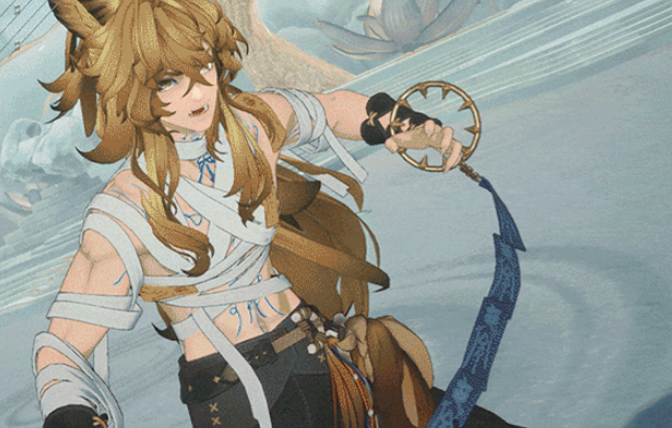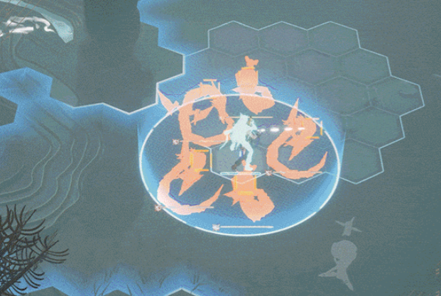 他的主动技“沧海尽扫”只能在防御姿态下使用,释放时会对指定范围内敌人形成物理伤害,并增加“天相”,自动技会对前方单体目标形成物理伤害,再进行一次扇形范围物理伤害,并附带破坏格挡条效果后根据当前姿态触发额外效果,如果是攻击姿态会瞬移到范围内血量最低的目标附近触发一次自动技,回复自身生命值后再返回原地,防御姿态则是获得“天相”。
