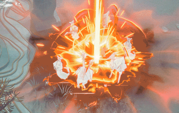 他的主动技“天地不照”在使用后会进入到攻击姿态,消耗掉全部的“天相”,对周围形成范围物理伤害,每点消耗的“天相”会额外提升该招式伤害,同时让自己的自动技伤害提升,回复速度和攻击速度提高,该状态会持续数秒期间不可使用“沧海尽扫”,再次使用会切换到防御姿态。