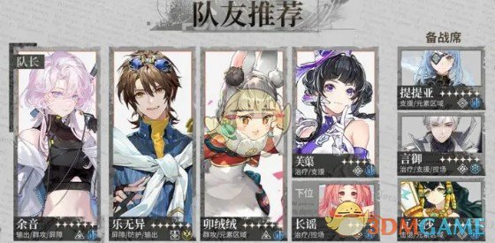 水雷相关的配队可以选择提提亚、言雀、言御等减抗角色作为备战席角色,在需要的时候上场释放技能,由余音打出巨额爆发。