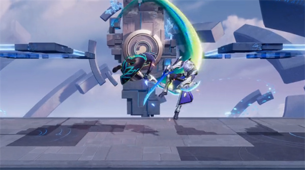 角色下蹲开始预备,在天使挥刃重击后向上跃出再次攻击。
