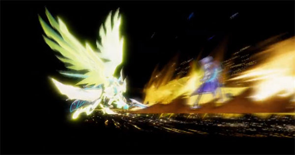 跳向空中回旋挥舞长刀,随后和天使一同发起猛烈攻击。