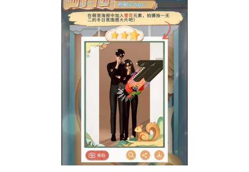 7、贴纸找到记载中点两下,驯鹿点两下,草莓头套点两下、这边走点两下,超快乐点两下,闪耀墨镜点到上限。