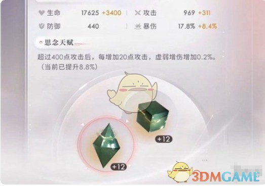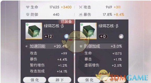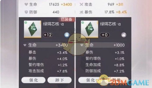 2、对于月卡和日卡左边的芯核,他们的主属性是固定的,因而不用看,直接从副属性的数值开始看。
