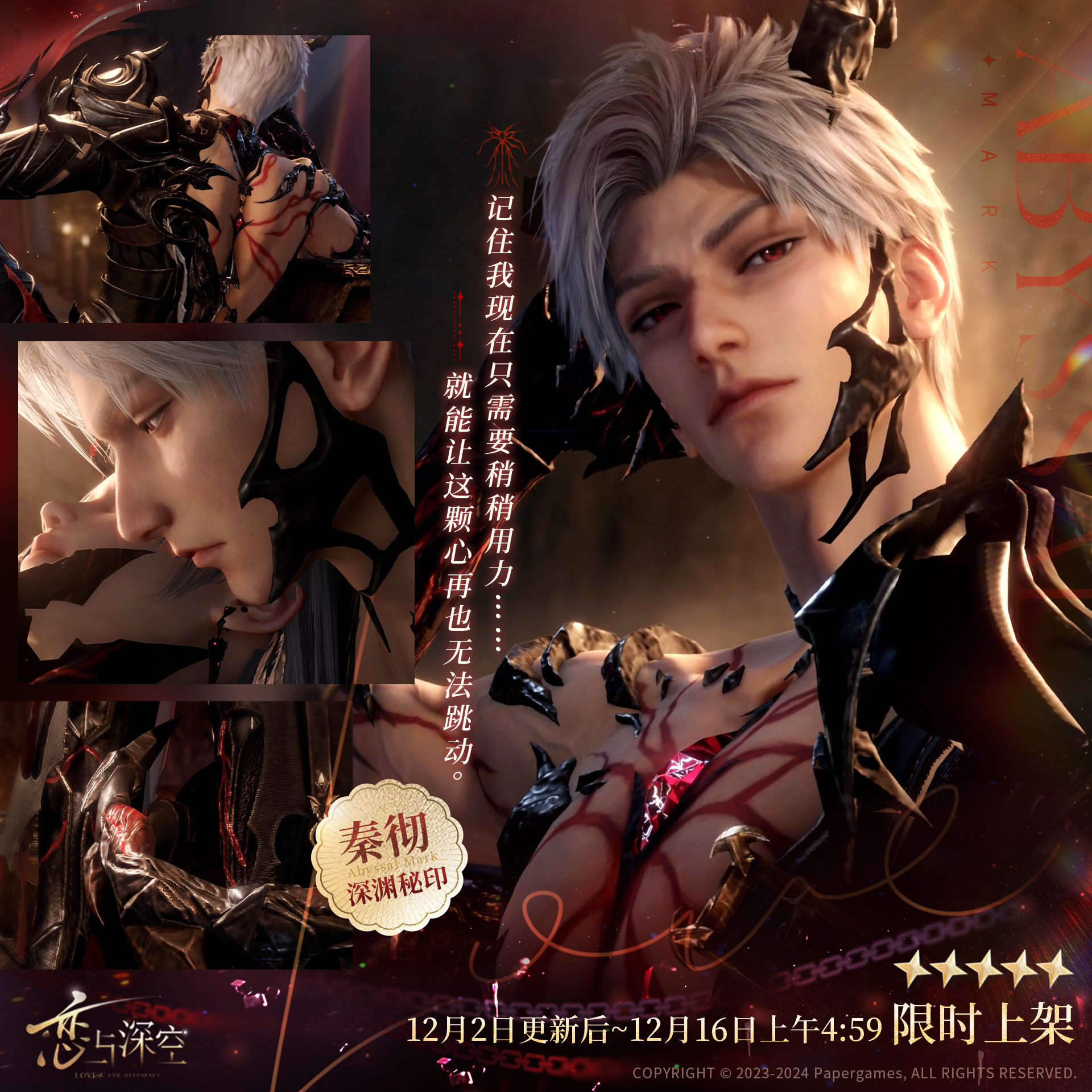 12月2日更新后~12月16日上午4:59,五星日冕套装思念「秦彻·深渊秘印」、「秦彻·深渊霞晕」开放获取。