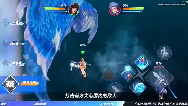 效果:向摇杆的方向进行瞬移,瞬移期间处于无敌状态若瞬移时身边有1技能留下的水球,则会将水球一起带到我们瞬移的落点。