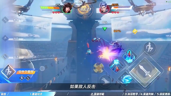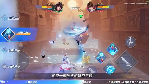 大乔可以连续跳跃四次,每次跳跃如果碰到敌人还会踩击敌人;空中的下普攻会斜下方进行踹击,将敌人击飞后自己也会腾空,可以不断释放空中下普攻实现空中无限连。
