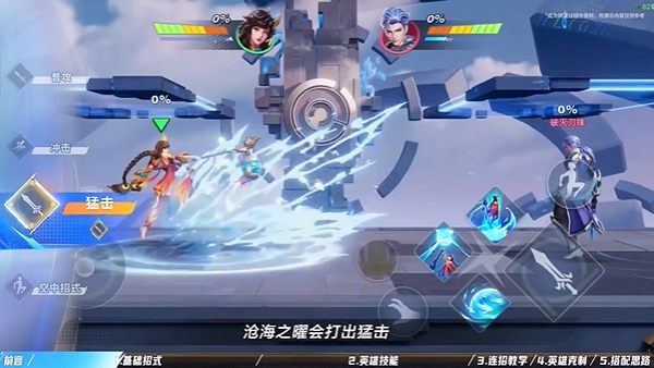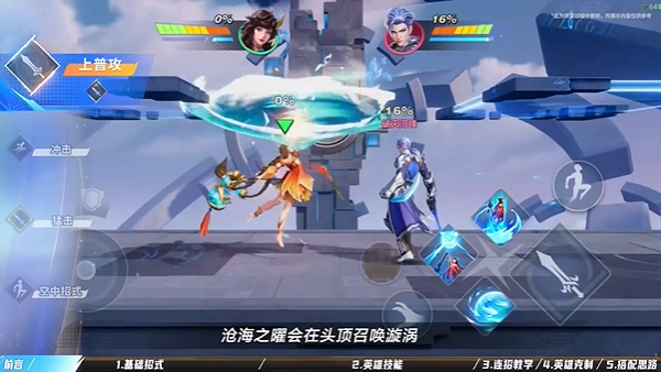 冲刺状态下按下普攻,大乔会召唤海洋阵法击退敌人,击飞力度不高,可以用来衔接后续的连招。