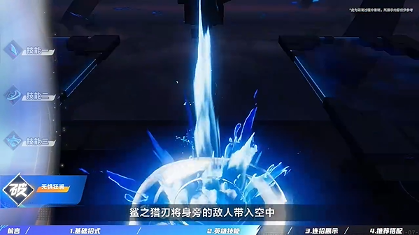 效果:澜将敌人挑飞,最后化身一只鲨鱼俯冲而下。