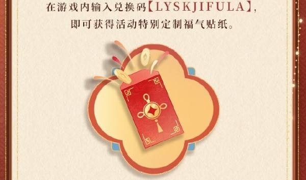 输入兑换码,领取新春专属福气贴纸,定格你的新春喜悦!