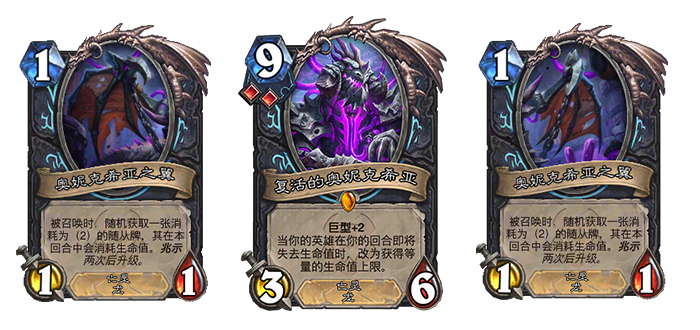 与死亡之翼结盟的六个职业(恶魔猎手、死亡骑士、潜行者、萨满祭司、战士以及术士)还将掌控兆示关键词,这能进一步强化他们的巨型随从。