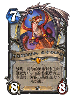 当你变身为死亡之翼时,将释放属于你自己的灾变,并从四种末日技能中择一触发。击溃最为强大的敌方随从。用龙火灼烧整个对战面板。奴役强大的生物为你而战。用你强大的雏龙填满套牌。