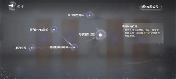 3、思考关联所有线索,得到结论【导演室的位置】。