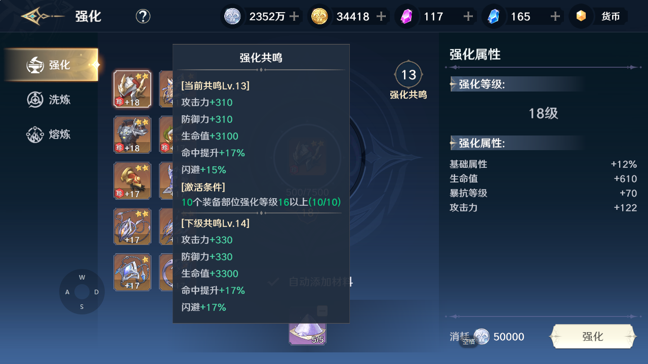 装备战力来源:装备本身+强化共鸣+属性洗练+属性熔炼+套装效果