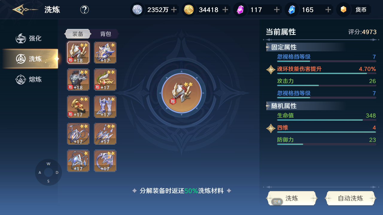 每件装备都可以洗练+熔炼改变他的属性值和属性种类,特殊的属性则会增加大量的战力,但是洗练和熔炼材料难获得,非大佬不要高要求