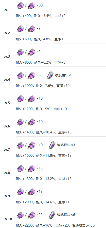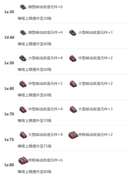① 机体等级突破材料