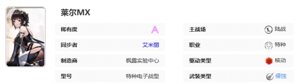 《艾塔纪元》莱尔MX怎么样?莱尔MX是《艾塔纪元》中的A稀有度陆战特种机体,同步者为艾米丽 。那么莱尔MX有什么技能效果,等级突破、超频和UR跃升需要哪些材料呢?接下来就让我们一起了解一下《艾塔纪元》莱尔MX机体一览吧。