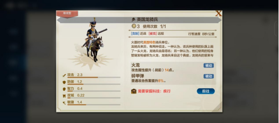 英国龙骑兵是火器时代的英国专属特色骑兵,属于攻击型兵种。
