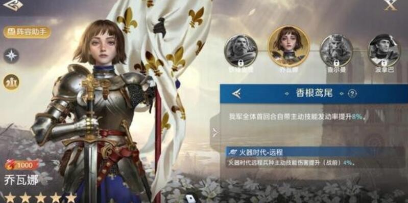 由于乔瓦娜的民族英雄羁绊三人擅长兵种都是骑兵,因此可以稳定获得兵种增益效果。在游戏中后期可以进一步提升伤害。是少有的T0级别英雄命运组合。
