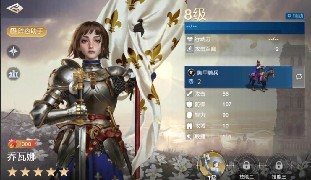乔瓦娜擅长使用骑兵。攻击距离为2。通常情况选择搭配辅助型或防守型骑兵。由于攻击距离较短,一般是在前锋位置负责替团队吸收伤害。
