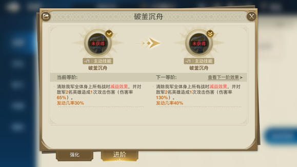 破釜沉舟:可以清除我军全体身上所有的战时减益效果,并且对敌军两名范围造成伤害。