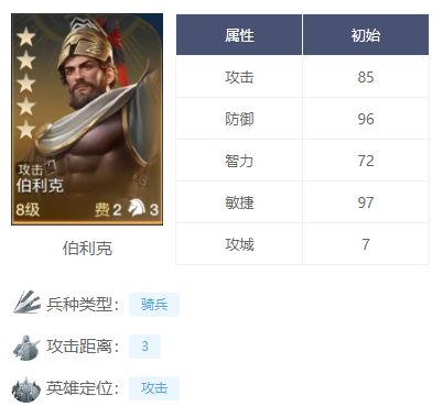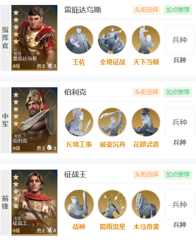 这套阵容的核心是伯利克!在更新之后他的自带技能【长墙工事】增加了一个反叛效果,可以让进入这个状态的敌军受到伤害时,攻击者恢复一定的兵力。而触发这个效果就需要我军全体对敌军累计造成6次伤害,所以搭配上雷庇达乌斯和征战王就可以更快的触发这个技能。