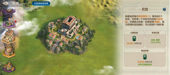 以上就是奇观百科之“月宫”的介绍,非常强力的大奇观,特别是科技加速效果,可以让持有该奇观的联盟玩家们发展比他人更快,战力更强。