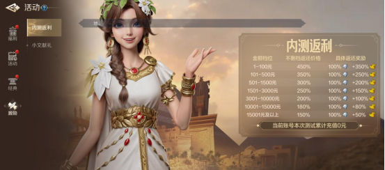 基于不同档位,玩家在“品鉴测试”中将获得不同程度的内测充值返利,回报比非常不错。